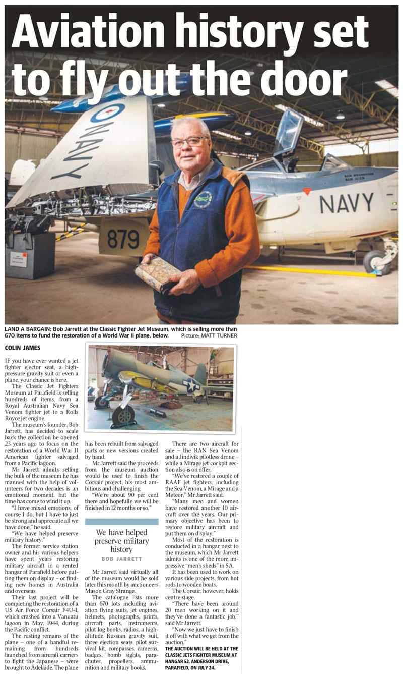 06/07/2019 - The Advertiser - "Aviation history set to fly out the door"