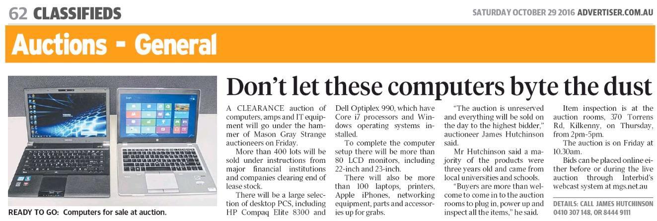 29/10/2016 - The Advertiser - "Don't let these computers byte the dust"