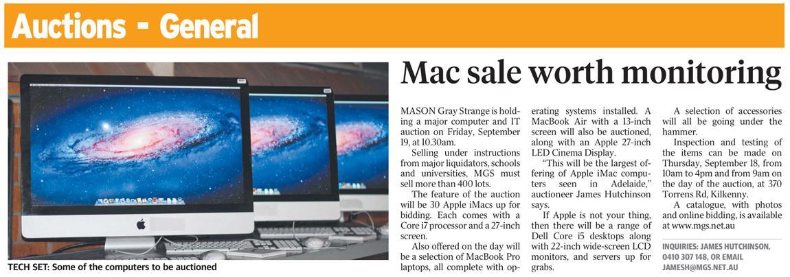 13/09/2014 - The Advertiser - "Mac sale worth monitoring"