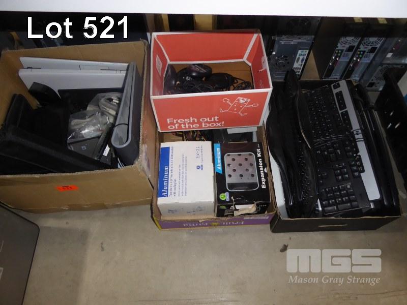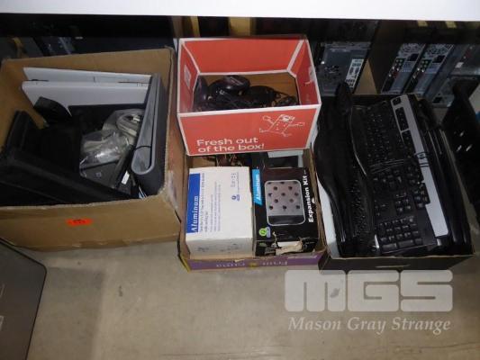 3 x BOXES ASST COMPUTER HARDWARE, PARTS, CORDLESS KEYBOARDS (NO RECEIVERS)