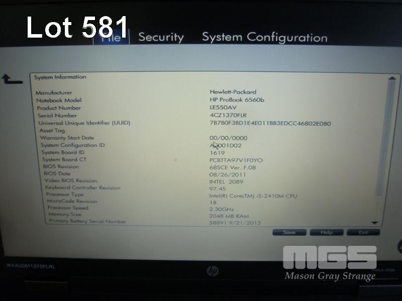 LAPTOP, HP PROBOOK 6560b (LE550AV), CORE i5 2410M (2ND GEN) @ 2.3GHz, 2GB DDR3 RAM, 250GB SATA HDD, DVD-RW, 15.6" WIDESCREEN (1366x768), INTEL HD VIDEO, Wi-Fi, BLUETOOTH, WINDOWS 7 PRO INSTALLED W/ LICENSE & DOCKING STATION WITH POWER SUPPLY (NOT DETECTING BATTERY) S/N:4CZ1370FLR