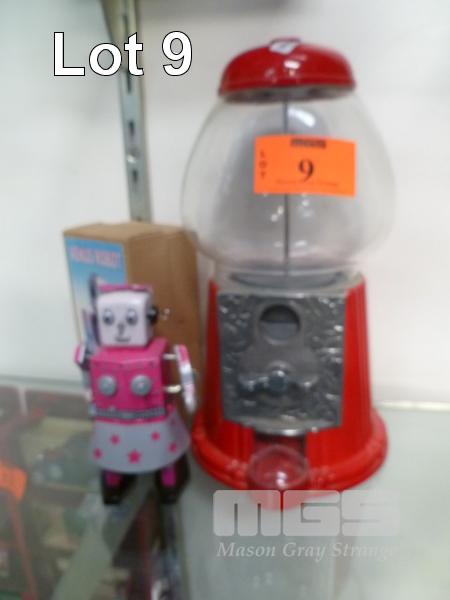 TIN TOY WIND UP ROBOT & METAL GUMBALL MACHINE