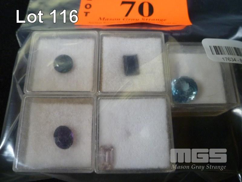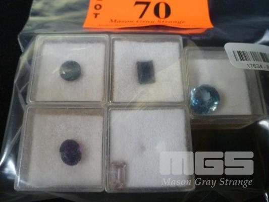 ASSORTED SYNTHETIC CUT STONES, SAPPHIRE, TOPAZ, GARNET, 2.82, 4.2, 1.88, 2.0, 9.0 CARAT