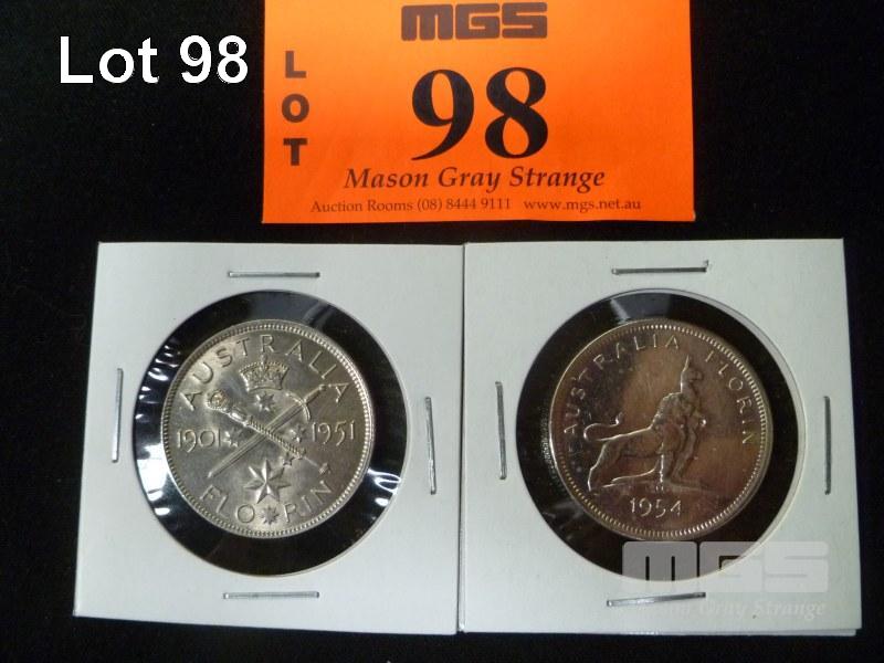 2 X AUSTRALIAN COMMEMORATIVE FLORINS V/F