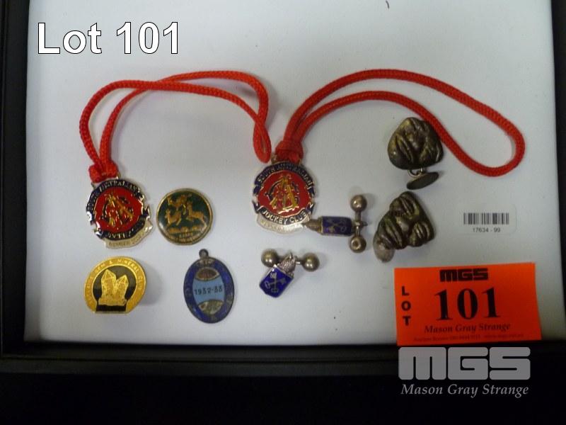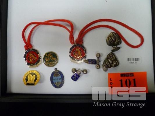 ASSORTED ENAMEL BADGES, 1932-1933 STURT FOOTBALL BLU, MEMBERS BADGES, CUFFLINKS