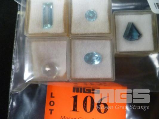 ASSORTED SYNTHETIC TOPAZ, 6.59, 4.1, 9.12, 4.42, 4.25 CARAT