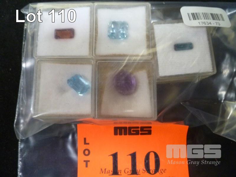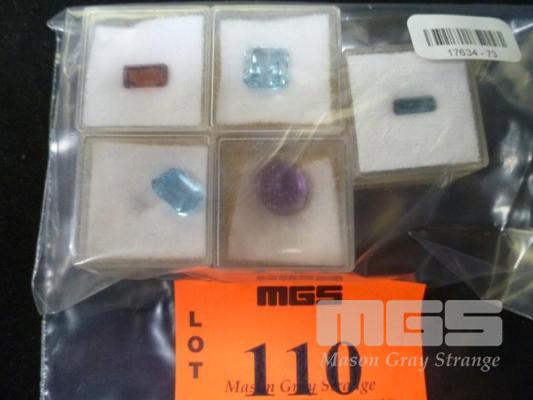 ASSORTED SYNTHETIC CUT STONES, GARNET, TOPAZ, AMETHYST, 6.2, 7.5, 2.5, 7.65, .98 CARAT