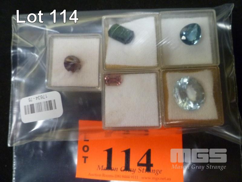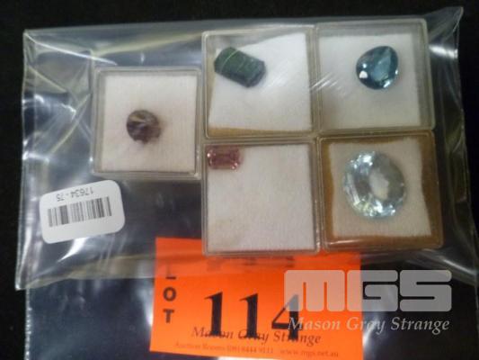 ASSORTED SYNTHETIC CUT STONES, TOPAZ, GARNET, EMERALD, 6.2, 18.6, 4.25, 1.92, 4.91 CARAT