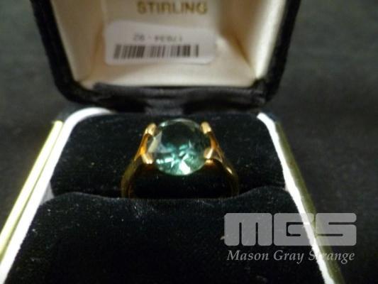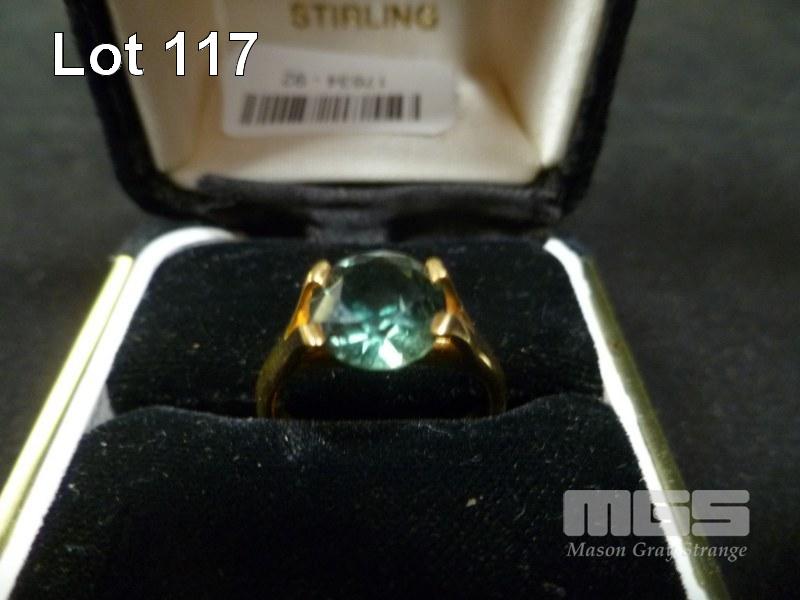 GOLD & SYNTHETIC SPINEL MOUNTED RING, MARKED 750