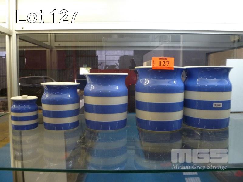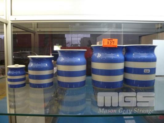 SET 5 CORNISHWARE LIDDED CANISTERS, GREEN STAMP