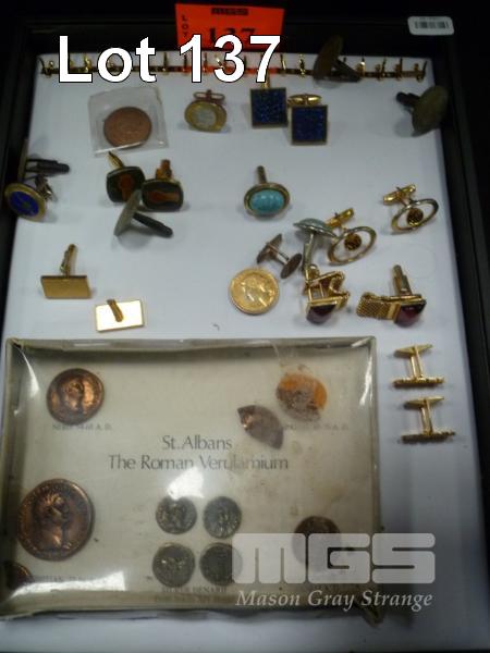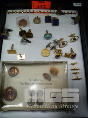 ASSORTED CUFF LINKS & REPO ROMAN COINS