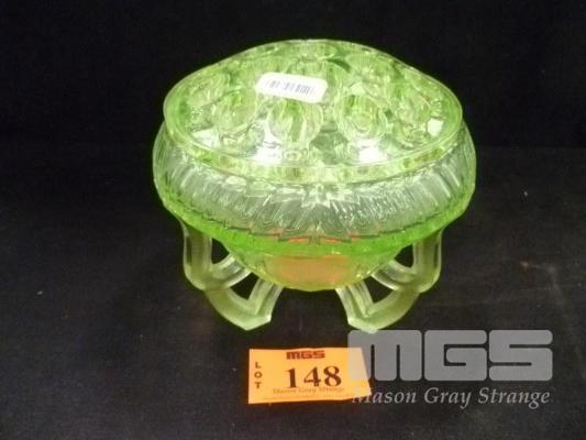 URANIUM GLASS VASE WITH FROG