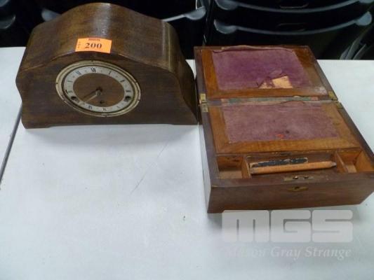 VINTAGE ENGLISH MANTLE CLOCK & MAHOGANY BOX