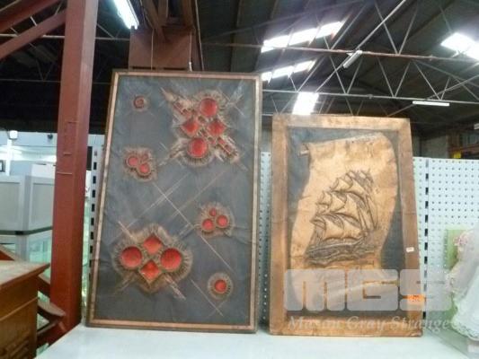 2 x COPPER WALL HANGINGS (1 x SHIP & 1 x RETRO)