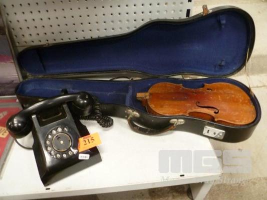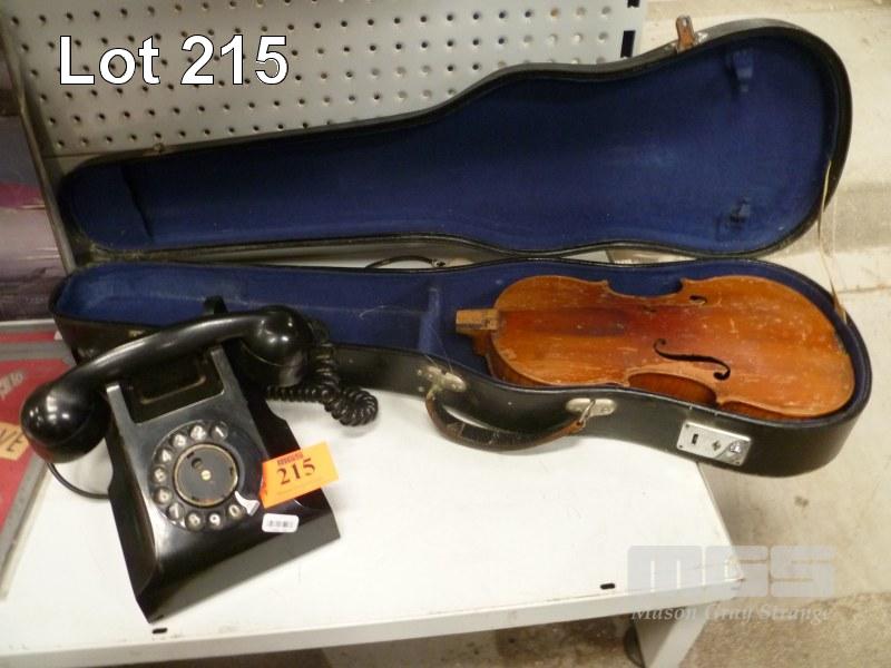 BLACK BAKELITE DIAL TELEPHONE & VIOLIN CASE