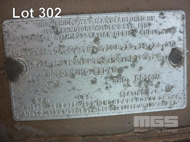 1974 HOLDEN HQ KINGSWOOD SEDAN REG: SGK897 (SA) (EXPIRED) VIN: 8N69LDL2796450 ENG: OL697527 ODO: 94,981 6 CYLINDER 202 ORANGE MOTOR, 3 SPEED COLUMN SHIFT AUTO, PETROL, BRONZE DUCO, 4 DOORS, 5 SEAT, ROOF RACKS, TOW BAR, VEHICLE RUNS & DRIVES, ORIGINAL CONDITION, WITH SPARE ORIGINAL MOTOR INCLUDED, ENGINE NUMBER OL543548, FAIR CONDITION FOR AGE, ASSOCIATED SPARE PART IN BOOT INCLUDING CARBIES, STARTER MOTOR, ALTERNATOR, FAN, FILTERS, HEADLIGHTS, HUB CAPS, AIR FILTER HOUSING, SPARK PLUGS, WINDOW WINDERS, FASTENERS, HOSES ETC (NO PAPERS, WITH 6 KEY/S, WITH OWNER'S MANUAL, WITH SERVICE BOOKS)