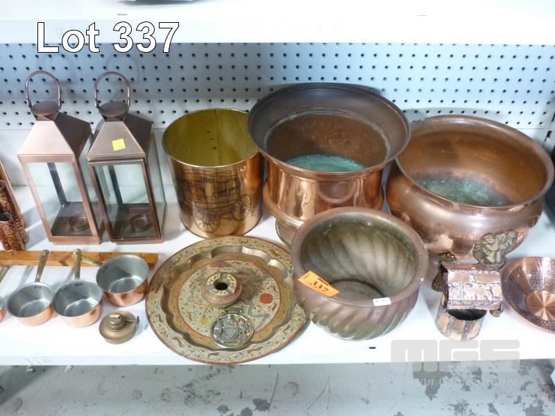 COLLECTION ASSORTED COPPER & BRASSWARE, POTS, VASES, PLATES, BOWLS, CANDLE HOLDERS, ETC