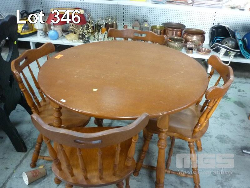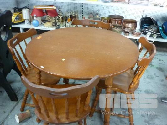 PINE 5 PIECE DINING SUITE, ROUND TABLE & 4 x SPINDLE BACK CHAIRS