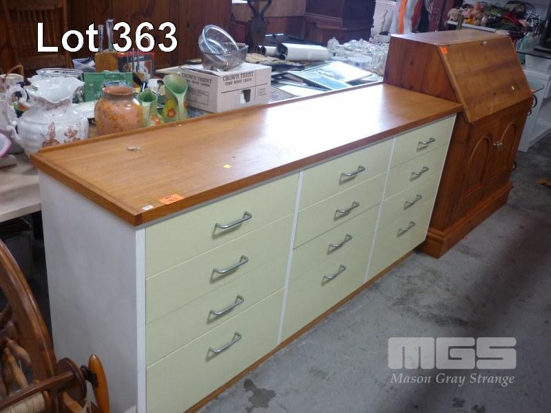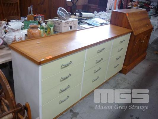 PINE TOP BEIGE PAINTED BUFFET, 12 DRAWERS