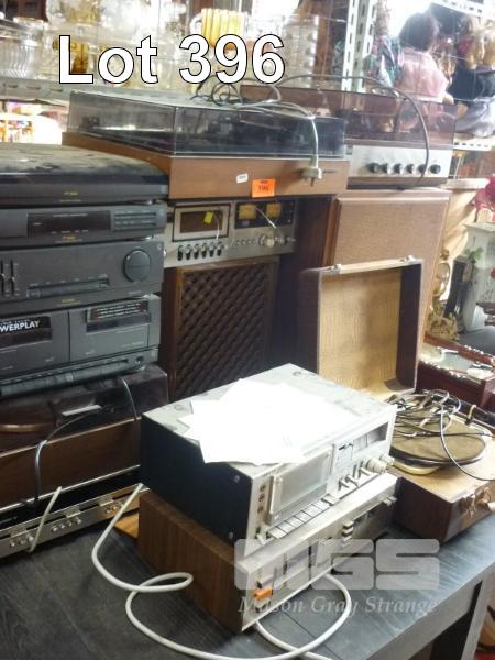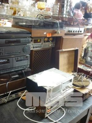 VINTAGE GIBBONS & DENHAM PORTABLE TURNTABLE & ASSORTED HI-FI UNITS & SPEAKERS, PHILIPS, HMV, KENWOOD, HITACHI ETC
