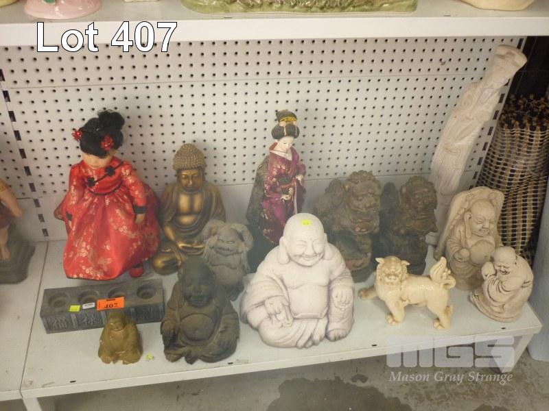 COLLECTION OF ORIENTAL STYLE STATUES, BUDDHA & FOO DOGS