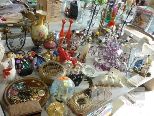 ASSORTED CANDELABRAS, ORNAMENTS, FIGURINES ETC