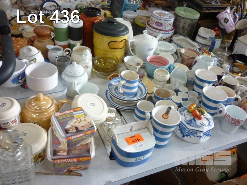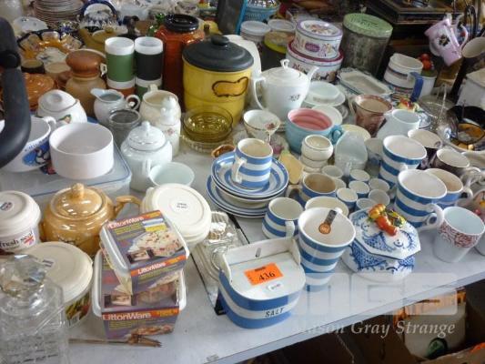 ASSORTED KITCHENWARE, MUGS, BOWLS, PLATES ETC
