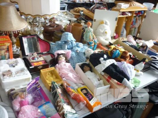 ASSORTED DOLLS, ACCESSORIES, ETC, 1 x TABLE