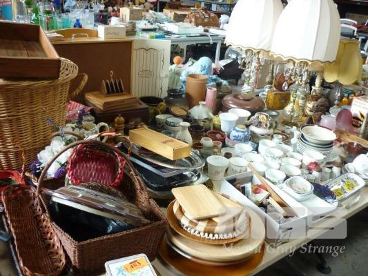 ASSORTED WICKER BASKETS, SERVINGWARE, POTTERY, PORCELAIN, ETC