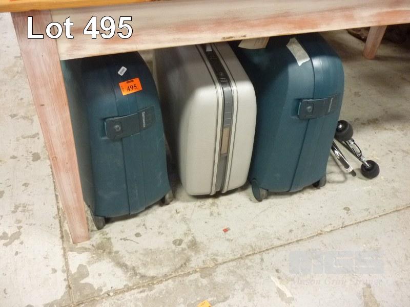 3 x SUITCASES & LUGGAGE TROLLEY