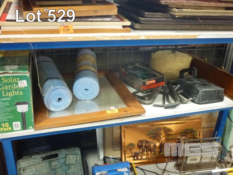 SOLAR LIGHTS, EXERCISE MATS, RYOBI SANDER, ALLEN KEYS, HAT/COAT RACK ETC