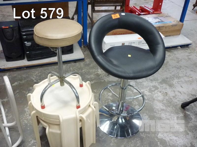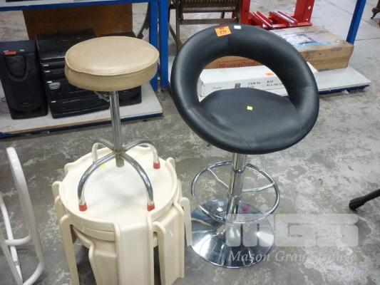3 x KARTELL PLASTIC SIDE TABLES, BLACK VINYL BAR STOL & PIANO STOOL
