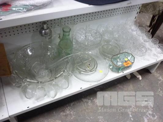 ASSORTED GLASS & CRYSTALWARE, PUNCH BOWL SET, JEWELLERY BOWL & CRYSTAL FIGURINES