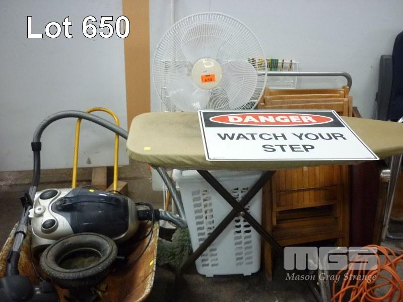 VACUUM CLEANER, CLEANING EQUIPMENT, GARDEN TROLLEY, OUTDOOR CHAIRS, TABLE, PEDESTAL FAN, ETC