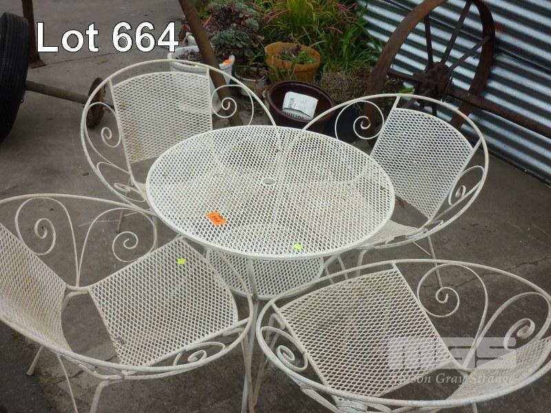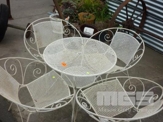 OUTDOOR SETTING, 5 PIECE, CIRCULAR TABLE & 4 x SAUCER CHAIRS