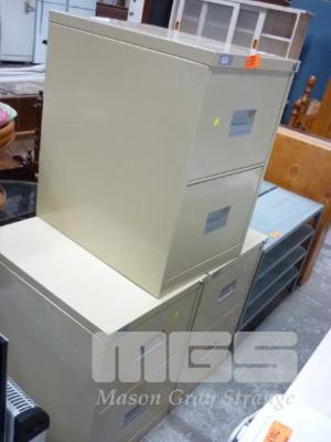 SET OF 3 x METAL BEIGE 2 DRAWER FILING CABINETS, WITH KEYS