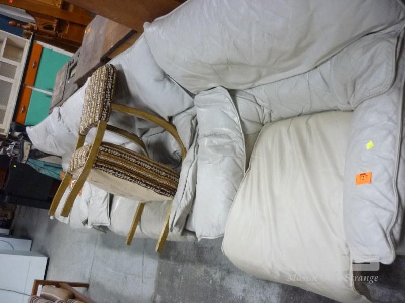 GREY LEATHER, 3 PIECE LOUNGE SUITE, 2 SEATER & 2 x ARM CHAIRS, SOME WEAR & MARKS