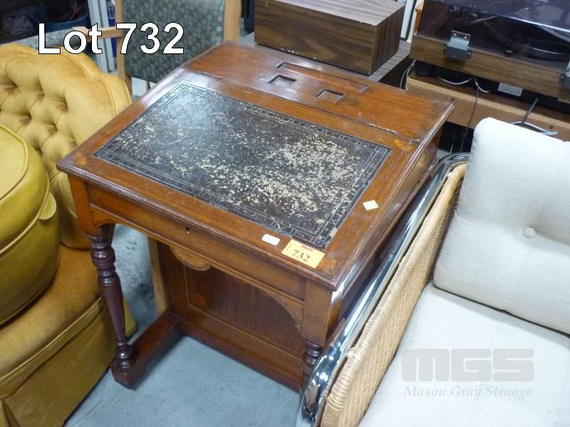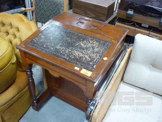 BLACKWOOD DAVENPORT STYLE WRITING DESK WITH BROWN LEATHER INLAY