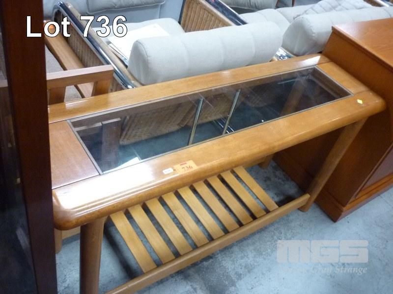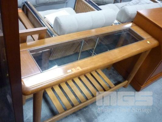 TEAK FRAMED, GLASS TOPPED HALL TABLE