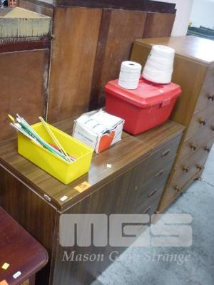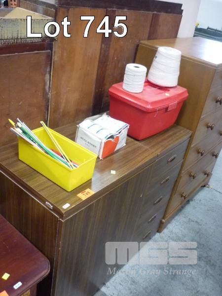 HORN WOODGRAIN LAMINATE SEWING CABINET, PLASTIC SEWING TIDY, KNITTING SUPPLIES, ETC