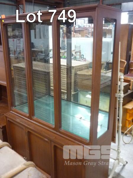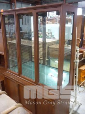 POLISHED TIMBER, 2 PIECE DISPLAY CABINET WITH 3 DOOR UNDERSTORAGE, 3 x GLASS DOORS, 2 x GLASS SHELVES, MIRROR BACK