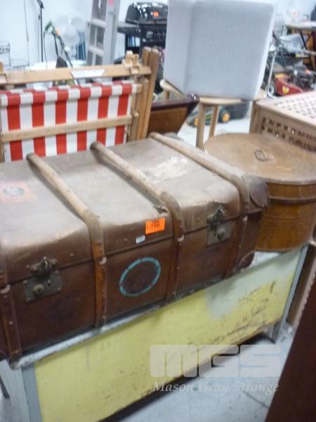 TIMBER BLANKET BOX, VINTAGE TRAVEL TRUNK & LARGE STORAGE TIN