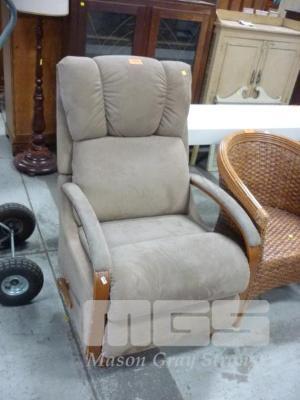 TIMBER FRAME, BEIGE FABRIC RECLINER