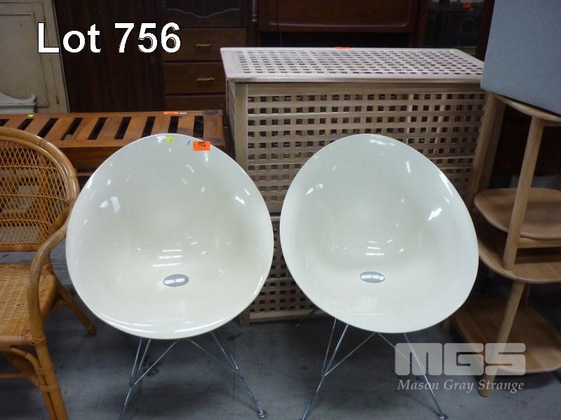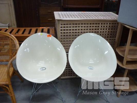 PAIR CHROME FRAME. BEIGE PLASTIC DOME CHAIRS