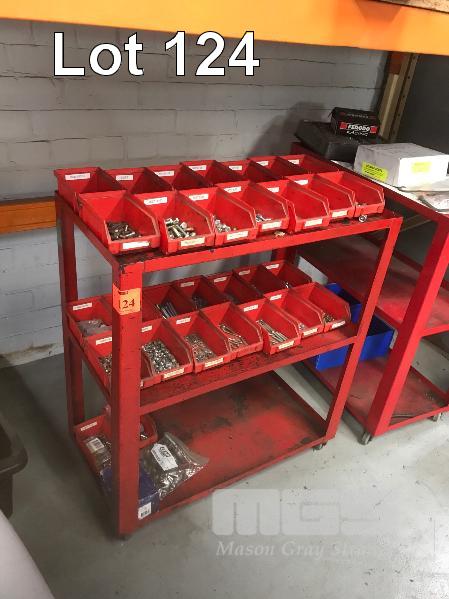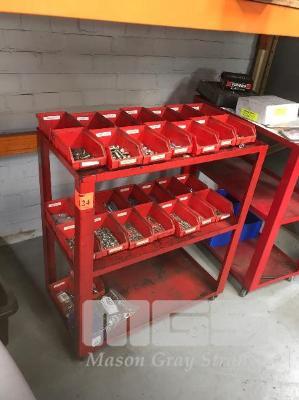 RED WORKSHOP TROLLEY, MOBILE, 2 TIER, APPROX 75 x 45cm