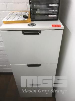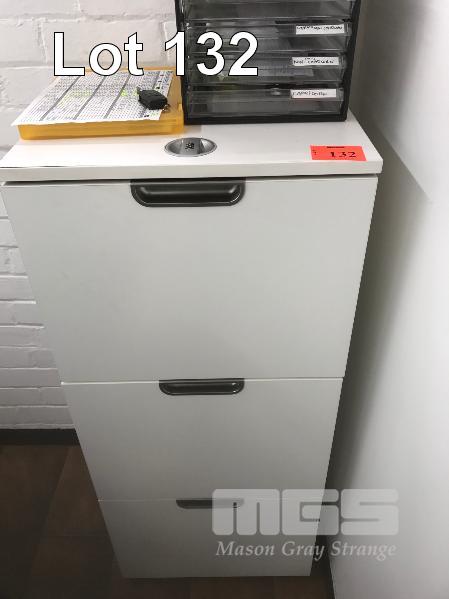 FILING CABINET, 3 DRAWER, WHITE TIMBER LAMINATE WITH COMBINATION LOCK