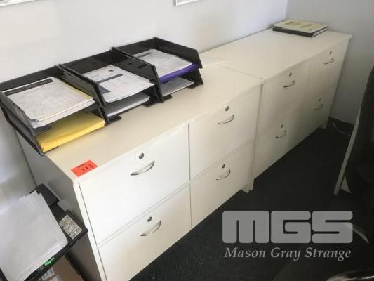 PAIR SIDE BY SIDE 4 DRAWER FILING CABINETS, WHITE TIMBER LAMINATE, 103 x 52cm