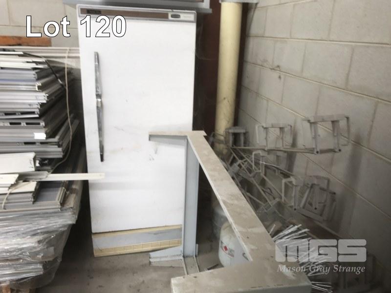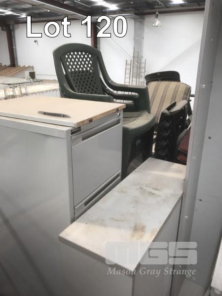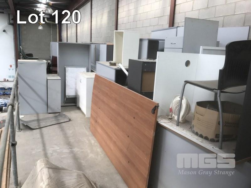 LARGE QUANTITY USED OFFICE FURNITURE, DESKS, BOOKCASES, CHAIRS, FILING CABINET, FRIDGES & CUPBOARD