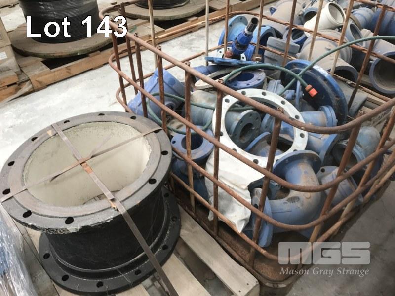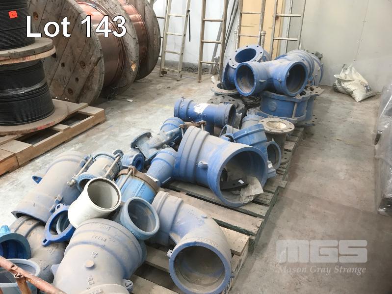 17 x PALLETS UN-USED CAST IRON & STAINLESS STEEL PIPE FITTINGS AVK-COUPLERS SUREFLOW VALVES SUREFLOW ELBOWS SUREFLOW TEES GATE VALVES, KNIFE VALVES, BENDS GRIPTITE, TYTON, TUBEMAKERS UP TO 375mm ID 450iD 430iD 400mm ID 100iD 250iD 110mm ID 200iD