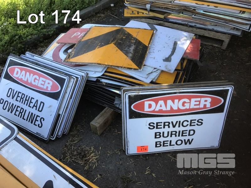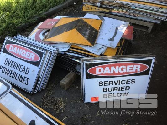 SIGNS, DANGER BURIED SERVICES, OVERHEAD POWER LINES, SPEED CONTROL, NEW WORK, NO LINES MARKED, DIRECTION ARROWS, 1 x PALLET